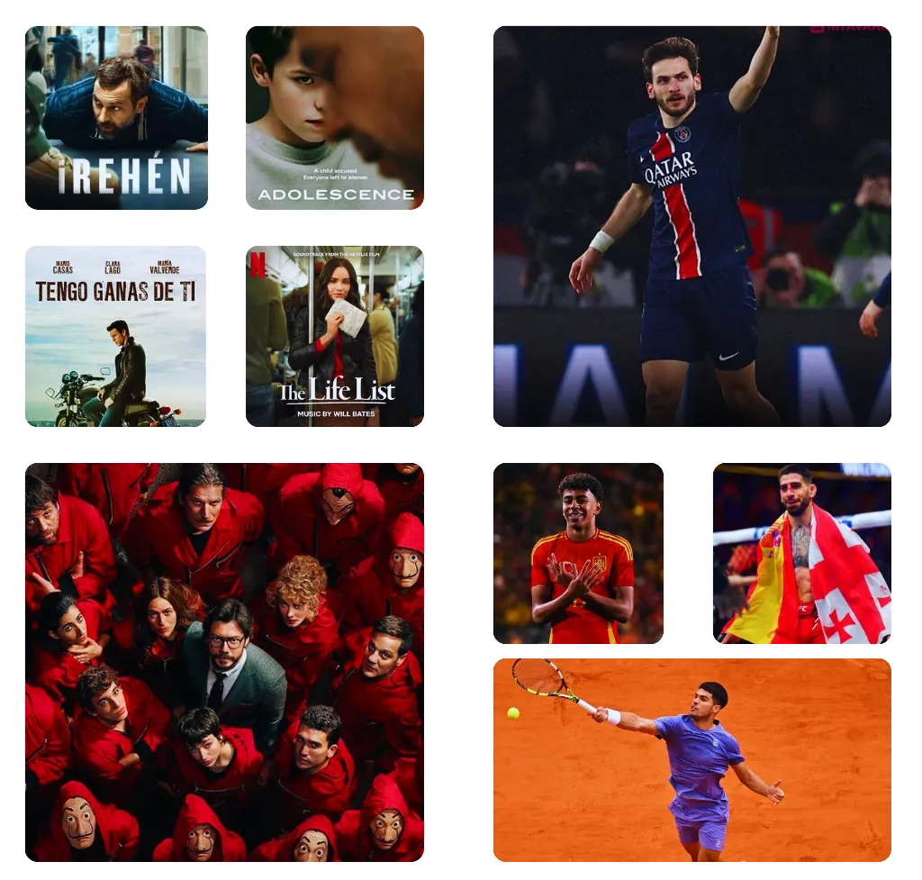 Transmisión ilimitada de tus deportes favoritos. Mira fútbol, baloncesto, tenis, ciclismo, pádel y más, todo con una sola suscripción.