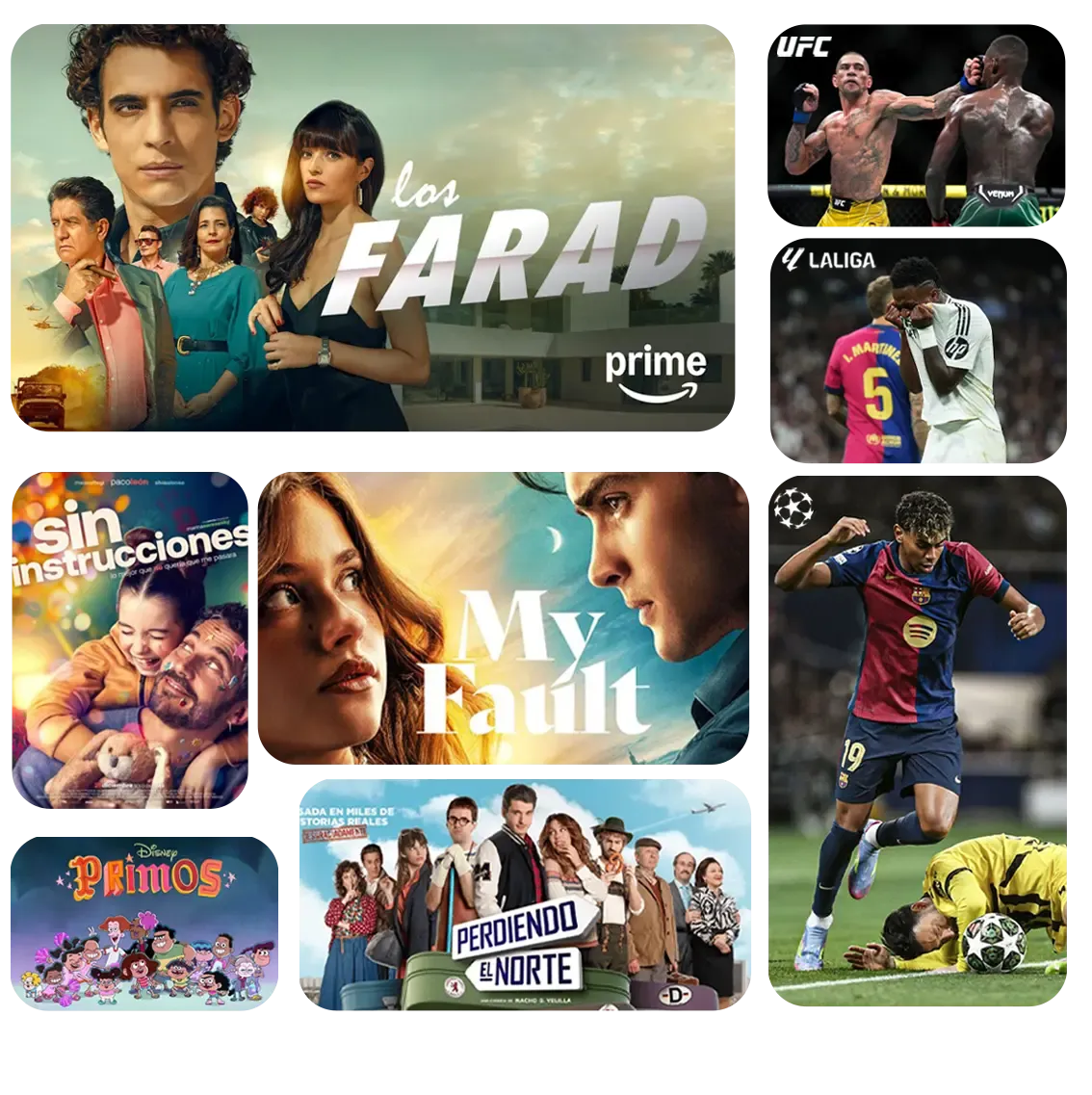 - Disfrute de millas de canales premium, películas y series de todos los países.